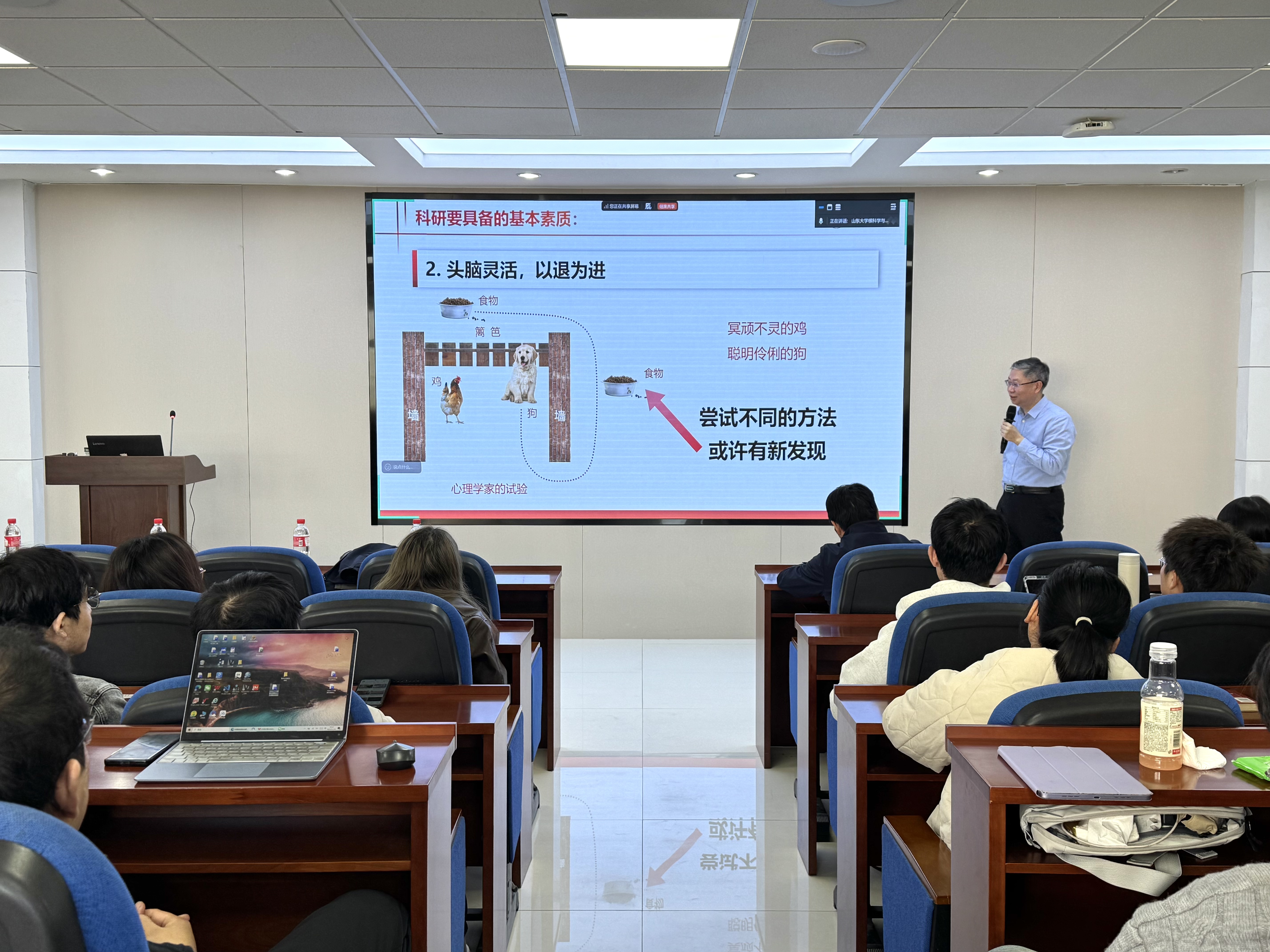 此次讲座立足新工科人才培养需求,将思想引领、方法指导与素养培育融为一体,不仅为研究生新生厘清了科研入门的思路路径,更树立了面向未来的成长导向。下一步,学院将持续深化研究生入学教育体系建设,为研究生新生扣好科研生涯“第一粒扣子”,为培养更多适应国家战略需求、具备核心竞争力的高层次创新人才筑牢根基。