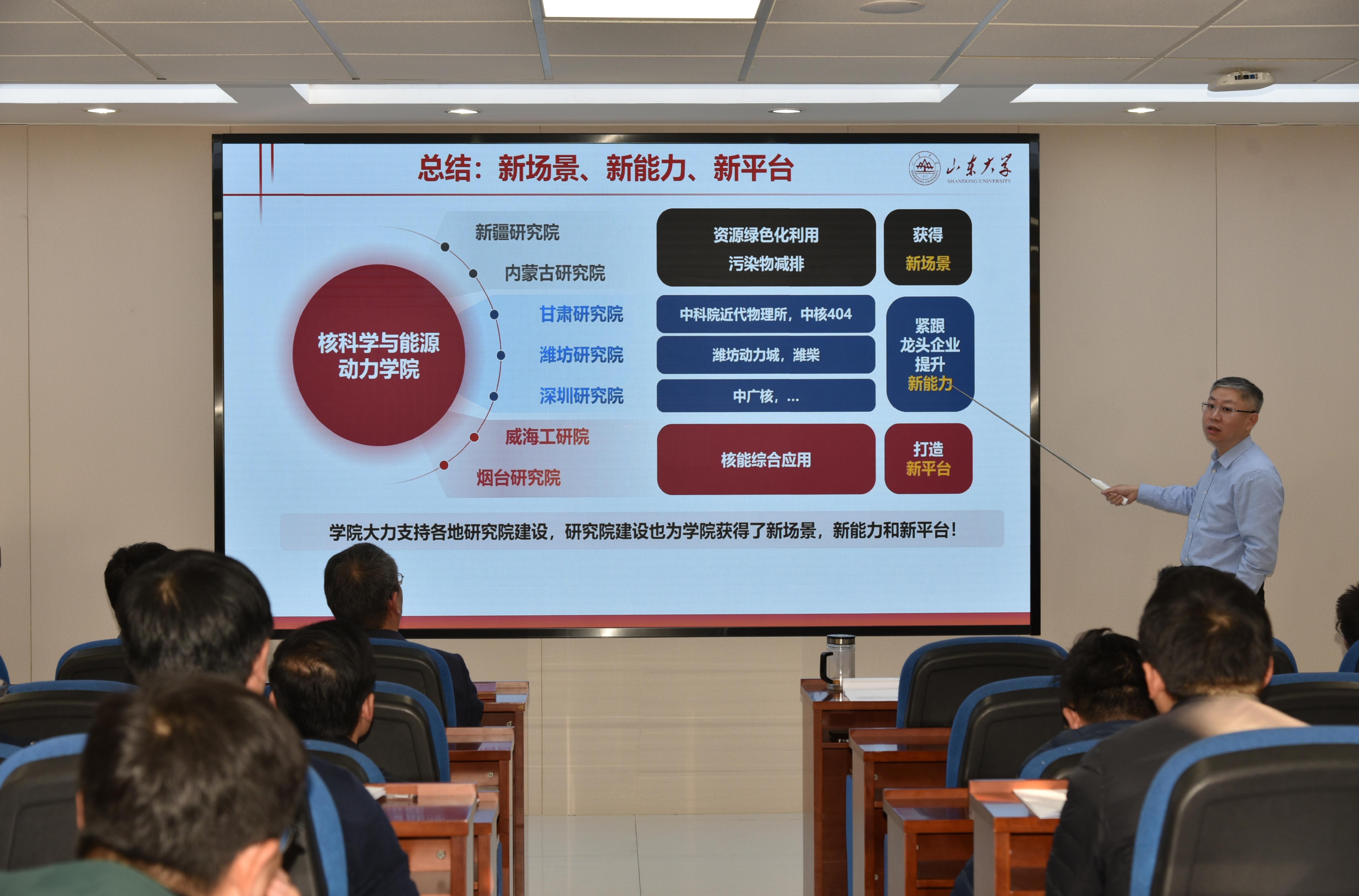 学院党委书记辛公明传达了山东大学边疆研究院有关省区“强国行”精神。强调要将国家战略部署转变为学院发展实效,切实增强服务国家能源安全和地方经济社会发展的责任感、使命感,推动学院与边疆研究院在科研合作、人才培养等方面实现深度融合。希望广大教师主动对接国家和边疆省区发展需求,积极面向经济社会主战场,加强与边疆地区政府、高校和相关企业的对接与合作交流,推动产学研用有机结合,在服务国家战略中彰显学院担当。