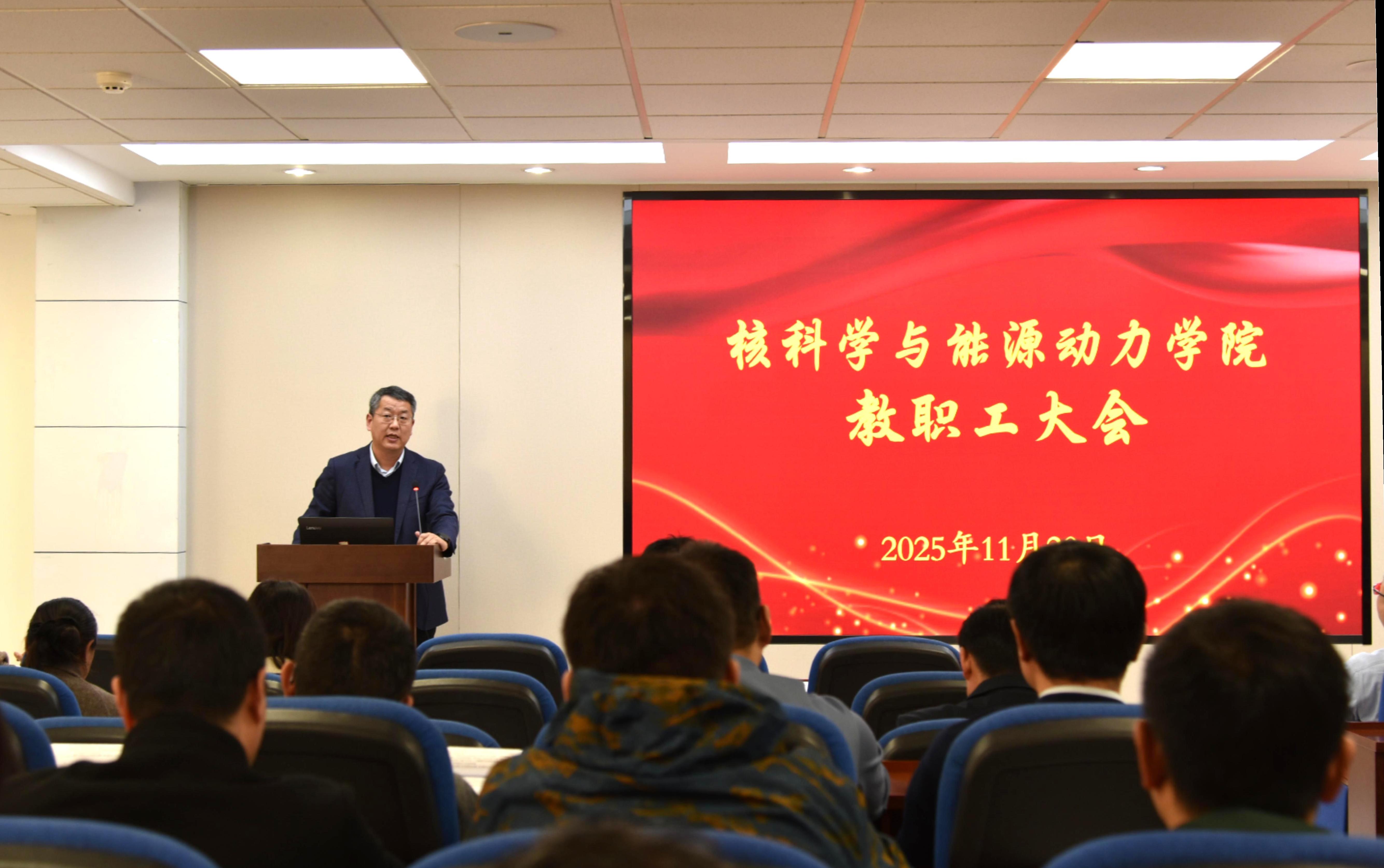 11月20日下午,核科学与能源动力学院召开全体教职工大会。学院常务副院长王守宇主持会议,全体教职工参加会议。