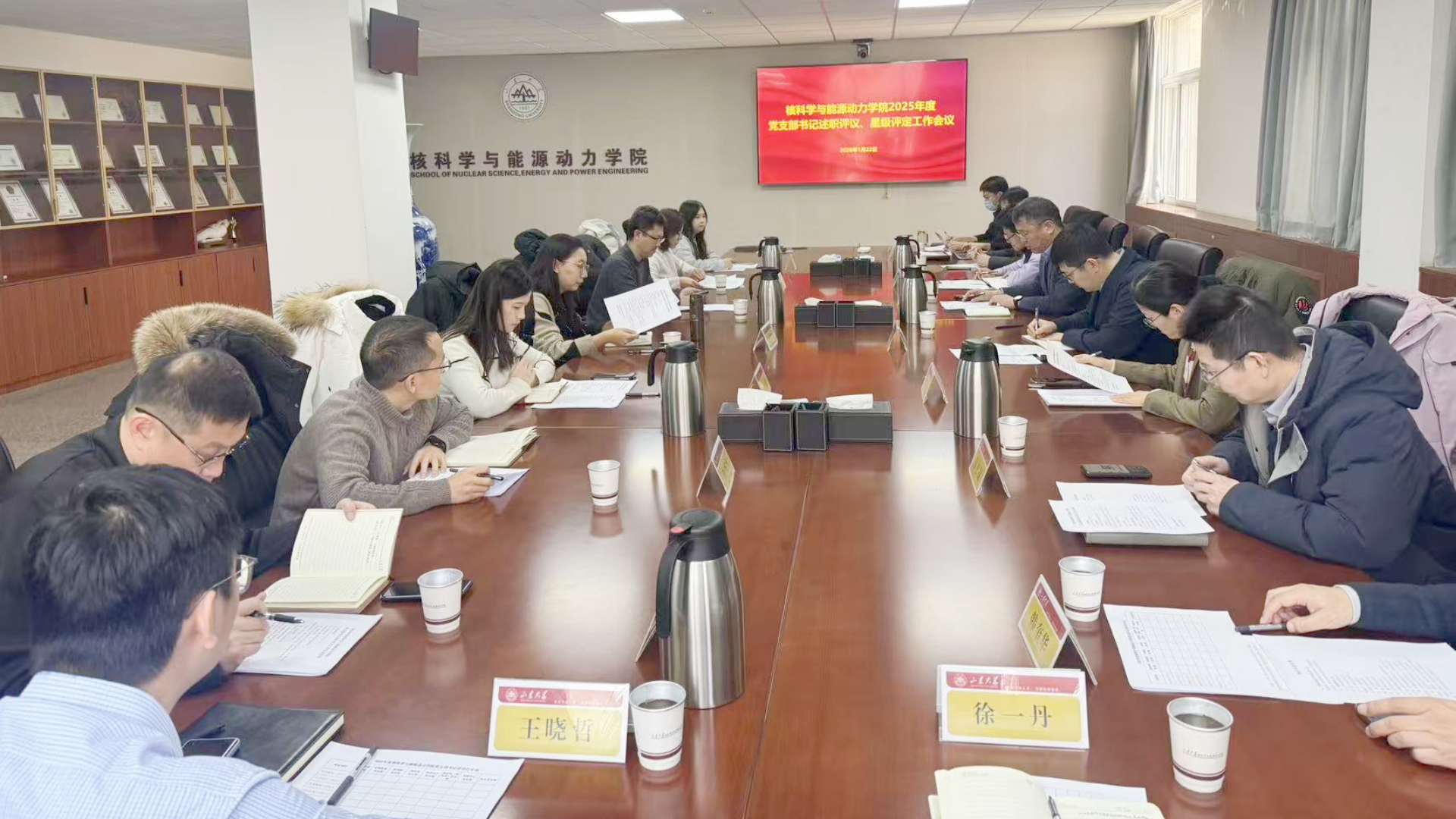 为深入贯彻落实全面从严治党要求,进一步压实党支部书记抓党建工作主体责任,2026年1月22日下午,核科学与能源动力学院召开教工党支部书记述职评议会议。学校党建考核第四工作组副组长李良杰、成员殷丛丛到会指导,学院党委委员、教工党支部书记参加会议。会议由学院党委书记辛公明主持。
