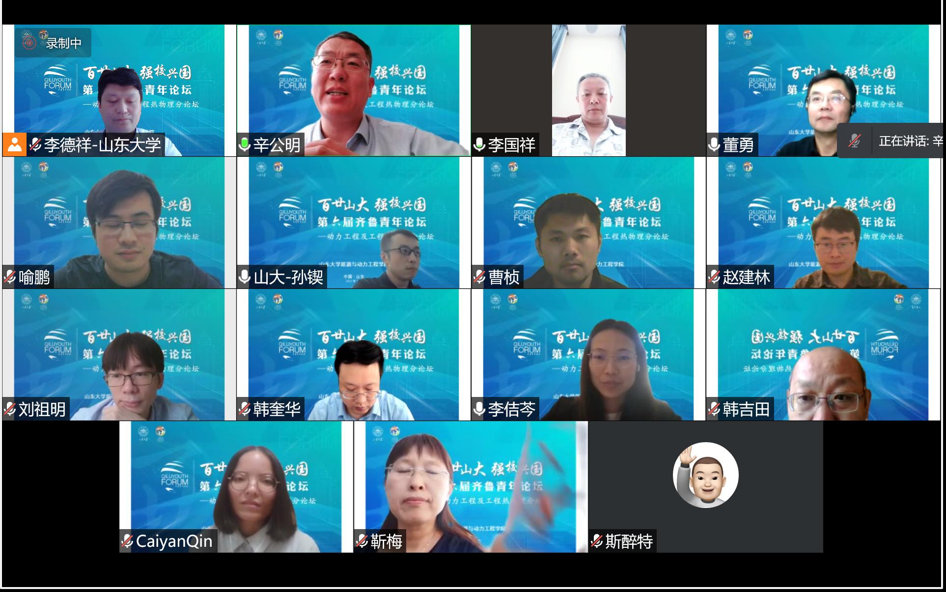 2021年9月29日,由能源与动力工程学院、热科学与工程研究中心、高等技术研究院联合承办的山东大学第六届齐鲁青年论坛动力工程及工程热物理分论坛顺利举行。本次会议采用腾讯会议线上形式进行,邀请了8位来自于美国康涅狄格大学、新加坡国立大学、苏黎世联邦理工学院、荷兰代尔夫特大学等国内外知名高校青年学者,能动学院副院长韩奎华教授和热科学中心主任孙锲分别主持了论坛的八个主题报告,有200余名师生参加了本次论坛。