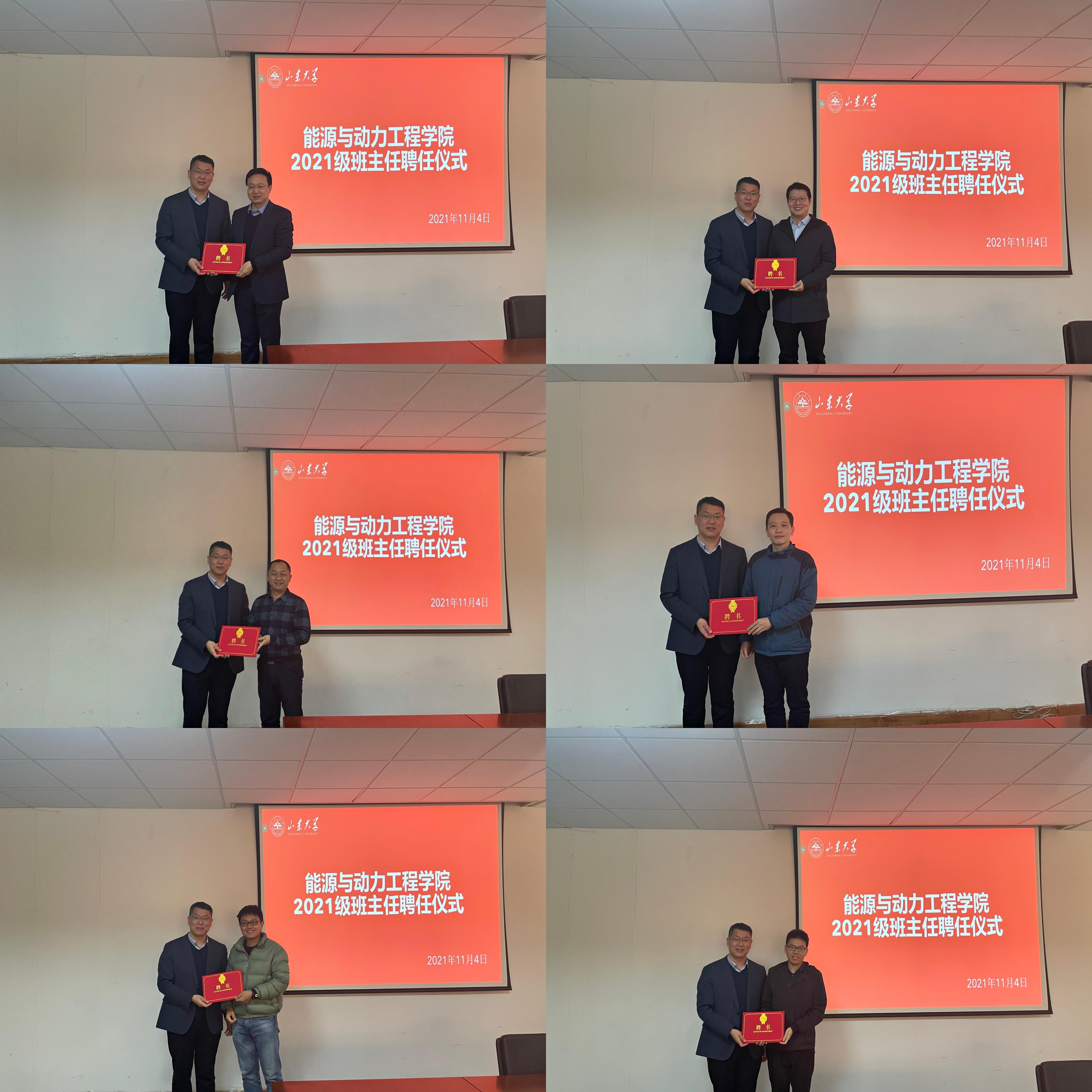11月4日上午,能源与动力工程学院于千佛山校区东配楼212举行2021级本科生班主任聘用仪式,能源与动力工程学院党委书记辛公明出席并颁发聘书,全体2021级本科生班主任,学院优秀班主任代表雷丽参加本次活动。仪式由学院党委副书记任伟主持。