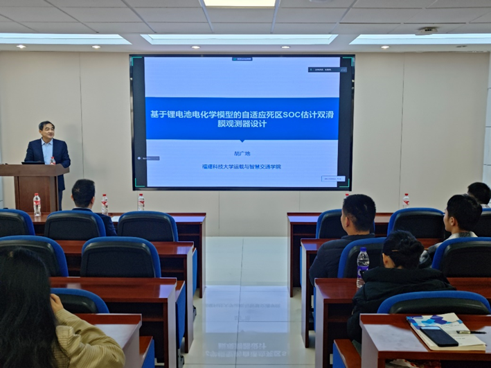 报告结束后,师生围绕锂离子电池温控监测、SOC估计算法建立以及锂离子电池电化学模型验证等问题与胡教授展开了热烈讨论。胡教授给大家介绍了自动驾驶半挂车控制研究中自由度简化问题以及下层力矩PID分配器,充分解答了师生疑惑。此次论坛不仅拓宽了同学们的学术视野,也激发了科研思考,同学们受益匪浅。