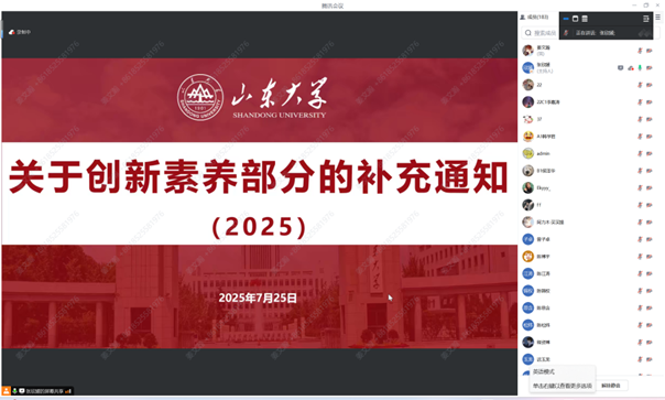 根据学校本科生院下发的关于《山东大学本科生综合评价办法(试行)》 创新素养部分的补充通知(2025)相关内容,2022级辅导员张欣媛向全体同学传达了通知精神和内容,就2024年、2025年创新素养部分的补充通知进行对比分析,特别说明其中的变化部分,提醒同学们学习新规遵循新规。她特别提醒同学们要把本科生综合评价办法和本科生推免办法区分开来,带领同学们认真学习两者在加分内容、赋分、竞赛加分规定、赛事名单等方面的区别;带领同学们学习学院关于推荐优秀应届本科毕业生免试攻读研究生科研成果与竞赛获奖赋分说明,在具体条文学习和对比分析解读中让同学们明晰各项规定,为即将进行的综合评价测算和推免工作打下良好基础。