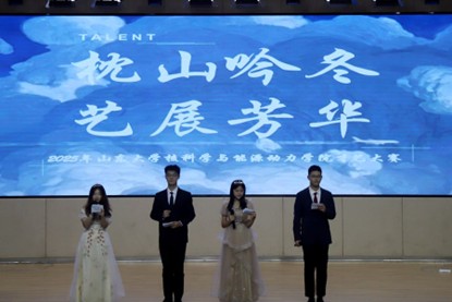 2025年11月16日晚七时,由核科学与能源动力学院组织的学生才艺大赛于山东大学兴隆山校区讲学堂101顺利举办。本次才艺大赛以“枕山吟冬,艺展芳华”为主题,吸引了核科学与能源动力学院的众多参赛选手与学生大众评委参与,现场气氛热烈。
