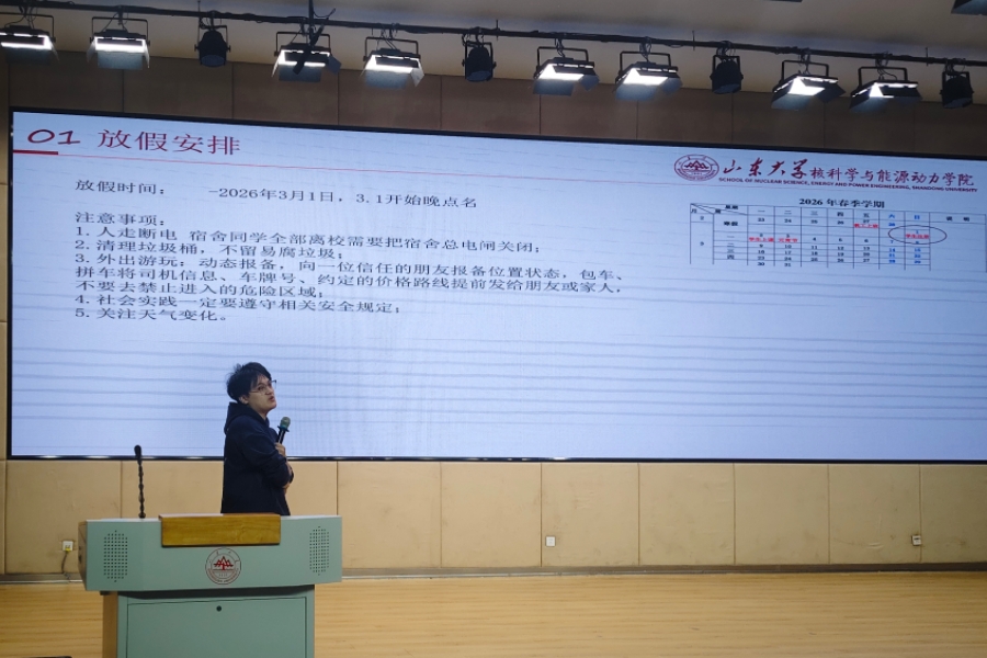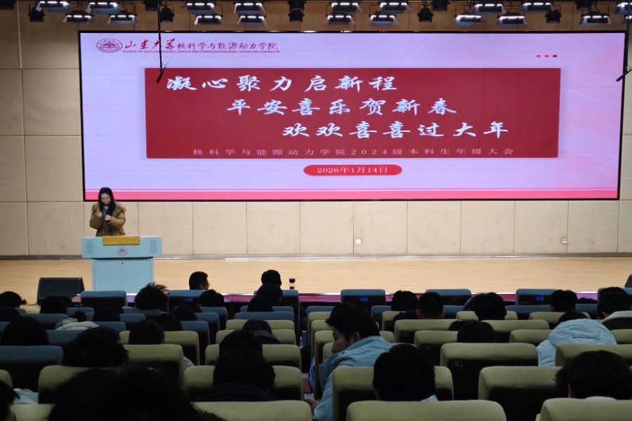 1月14日上午11时,山东大学核科学与能源动力学院于兴隆山校区讲学堂召开2024级本科生年级大会。会议由2024级辅导员李雪静、赵术军共同主持,2024级全体本科生参加。