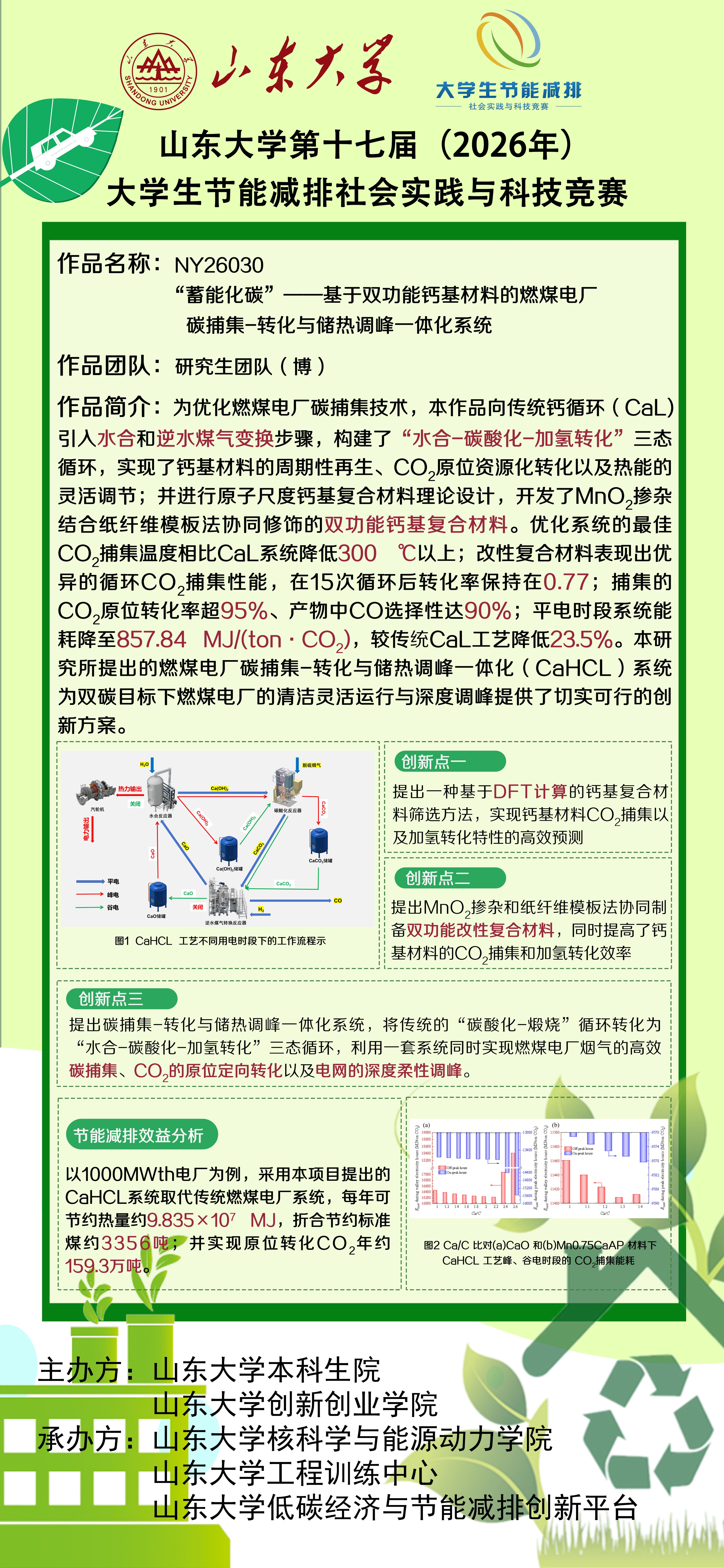 NY26030 “蓄能化碳”——基于双功能钙基复合材料的燃煤电厂碳捕集-转化与储热调峰一体化系统